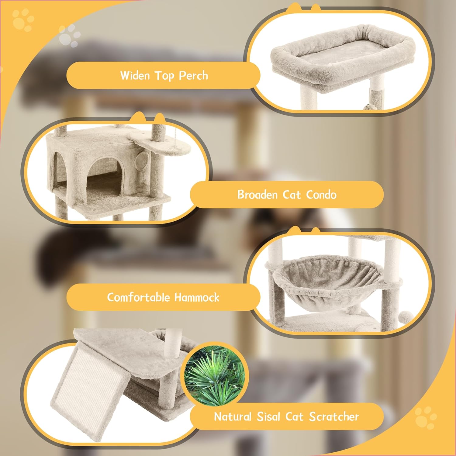 | Included Components | Hammock, cat scratching post,Top perch,cat condo |