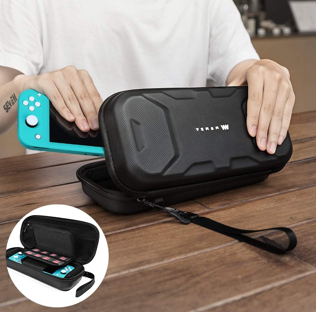 Conveniently transport your Nintendo Switch Lite/Nintendo Switch and all your gaming essentials in this rugged carrying case from Mumba! ✔ With a slim and lightweight design, this portable case is travel-friendly and can be easily carried by itself or in your bag, backpack, or luggage.✔ offers dual protection from shocks and drops with a hard, water-resistant shell made of durable EVA material ✔Has a padded middle layer to protect your console screen and Joy-Con controllers from getting scratched or damaged. ✔Designed with 16 card slot holders to keep your games safe and a zippered storage pocket to hold cables, headphones, and other accessories. Note: The Mumba carrying case also offers maximum storage capacity with room for a Nintendo Switch (including protective case cover and both Joy-Cons attached), 16 game cards, extra Joy-Cons, cables, and more. (Please note that the carrying case is not designed for larger items like the Nintendo docking station, pro-controllers, or the Mumba Battle series case).