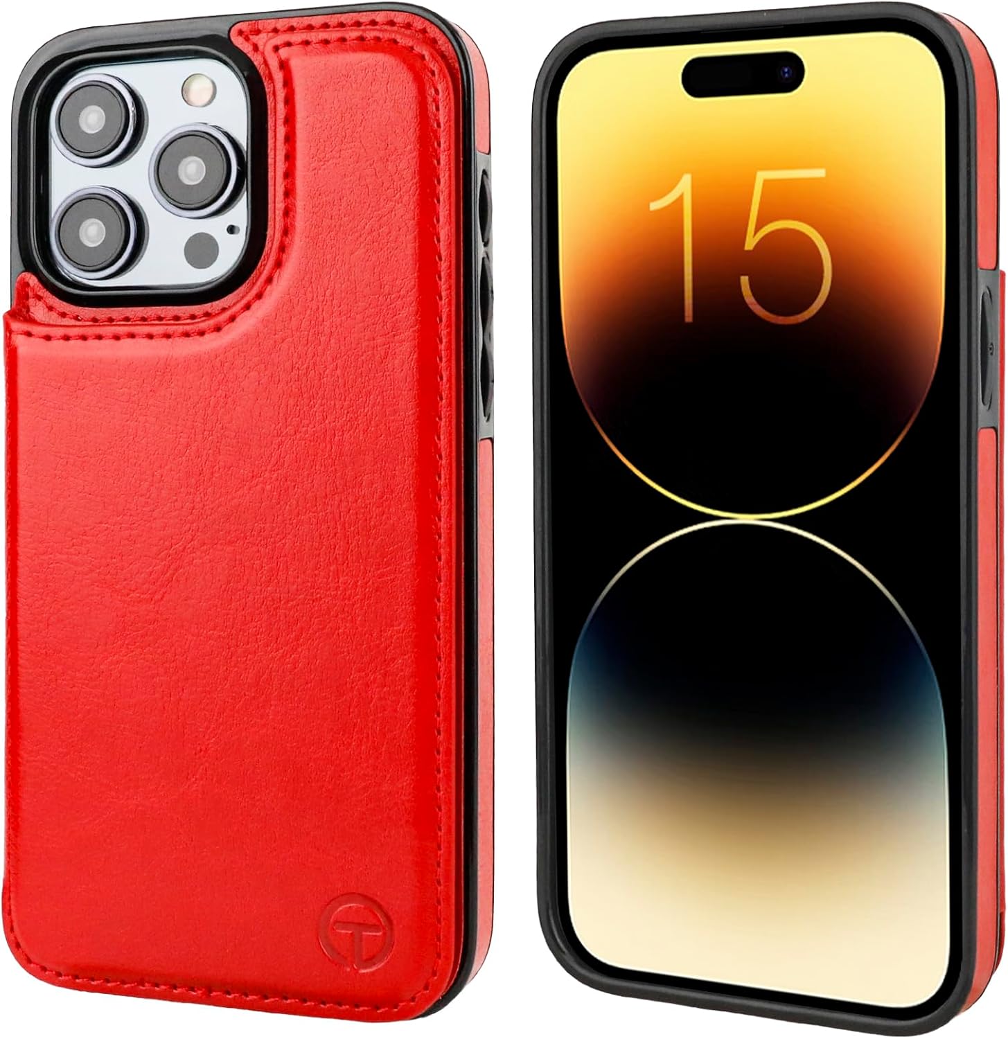 ONETOP Compatible with Magsafe for iPhone 15 Pro Max Wallet Case with Card Holder, PU Leather Kickstand Rfid Blocking Case, Double Magnetic Clasp and Durable Shockproof Cover 6.7 Inch (Red)